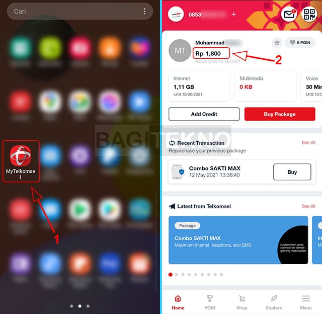 Untuk melihat sisa pulsa di aplikasi ini, maka silahkan buka aplikasi My Telkomsel yang terdapat pada Smartphone Android anda. Setelah aplikasi tersebut terbuka, maka anda akan melihat berapa sisa pulsa anda pada bagian kiri atas.