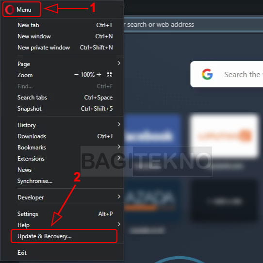 Selanjutnya, pada daftar menu yang muncul silahkan anda klik Update & Recovery. Setelah itu, proses pengecekan file update akan berlangsung secara otomatis. Jika tersedia update Opera, maka pembaharuan tersebut juga akan terdownload secara otomatis.