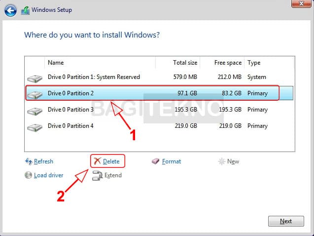 Jika hendak menginstall ulang Windows 10 pada Laptop yang sudah ada Windows di dalamnya, maka anda harus menghapus Windows lama tersebut. Anda harus berhati-hati dalam menghapus partisi Windows lama tersebut agar tidak salah hapus.