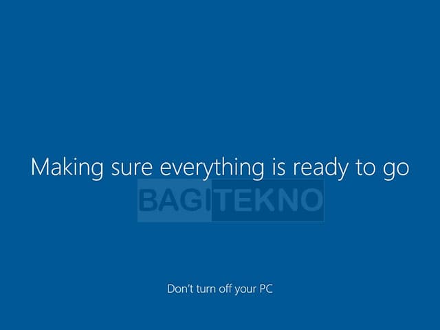 Setelah itu, Laptop atau Komputer anda akan restart kembali dan proses install Windows 10 akan berlanjut. Windows 10 akan melakukan persiapan sebelum memasuki proses konfigurasi, ini akan memerlukan waktu beberapa menit.