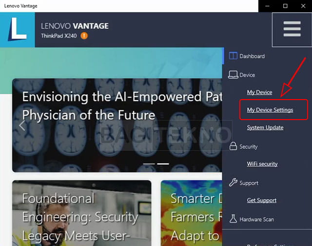 Setelah terbuka jendela software Lenovo Vantage, silahkan klik menu My Device Settings.