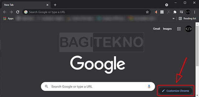 Pertama, silahkan buka browser Google Chrome yang sudah terinstall di Laptop atau Komputer PC Windows yang digunakan. Setelah terbuka, maka silahkan buka tab baru kemudian klik tombol Costumize (icon pensil) yang ada di pojok kanan bawah.