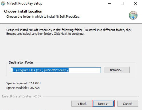 Kemudian, pada jendela selanjutnya, silahkan pilih lokasi dimana anda akan menginstall software NirSoft ProductKey tersebut. Jika tidak ingin mengubah lokasi penyimpanan, langsung saja klik Next.